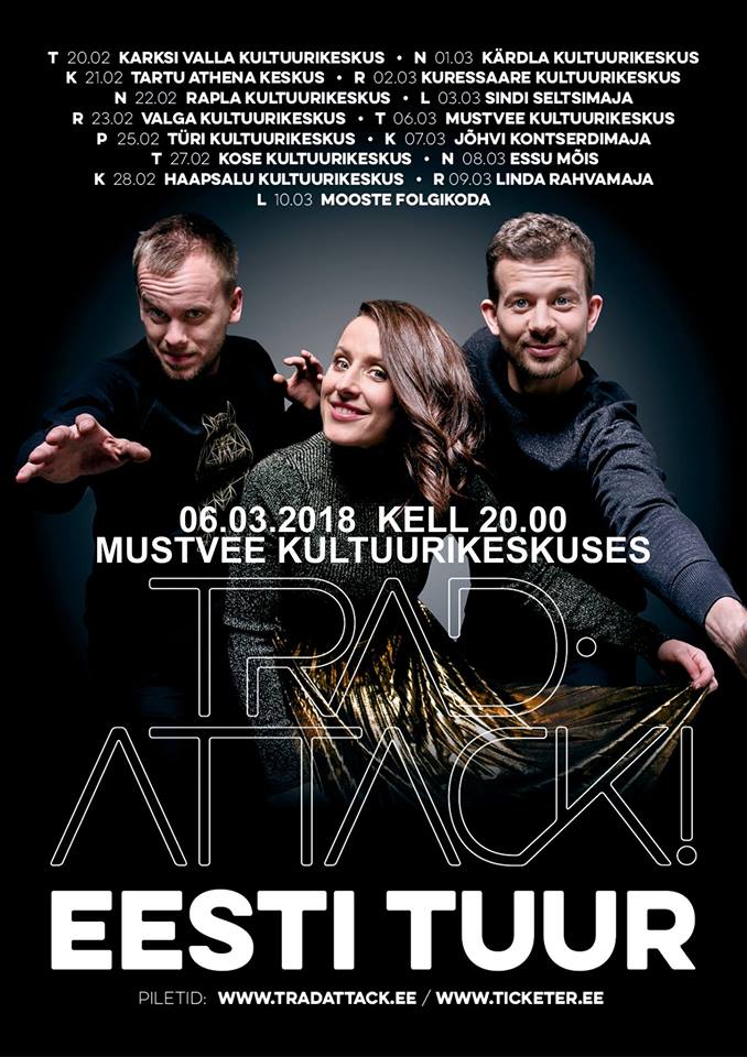 Trad Attack Mustvees 6. märtsil Trad.Attack! "EESTI TUUR" kontsert Jõgevamaal 06.03.2018 kell 20.00 Mustvee Kultuurikeskuses.