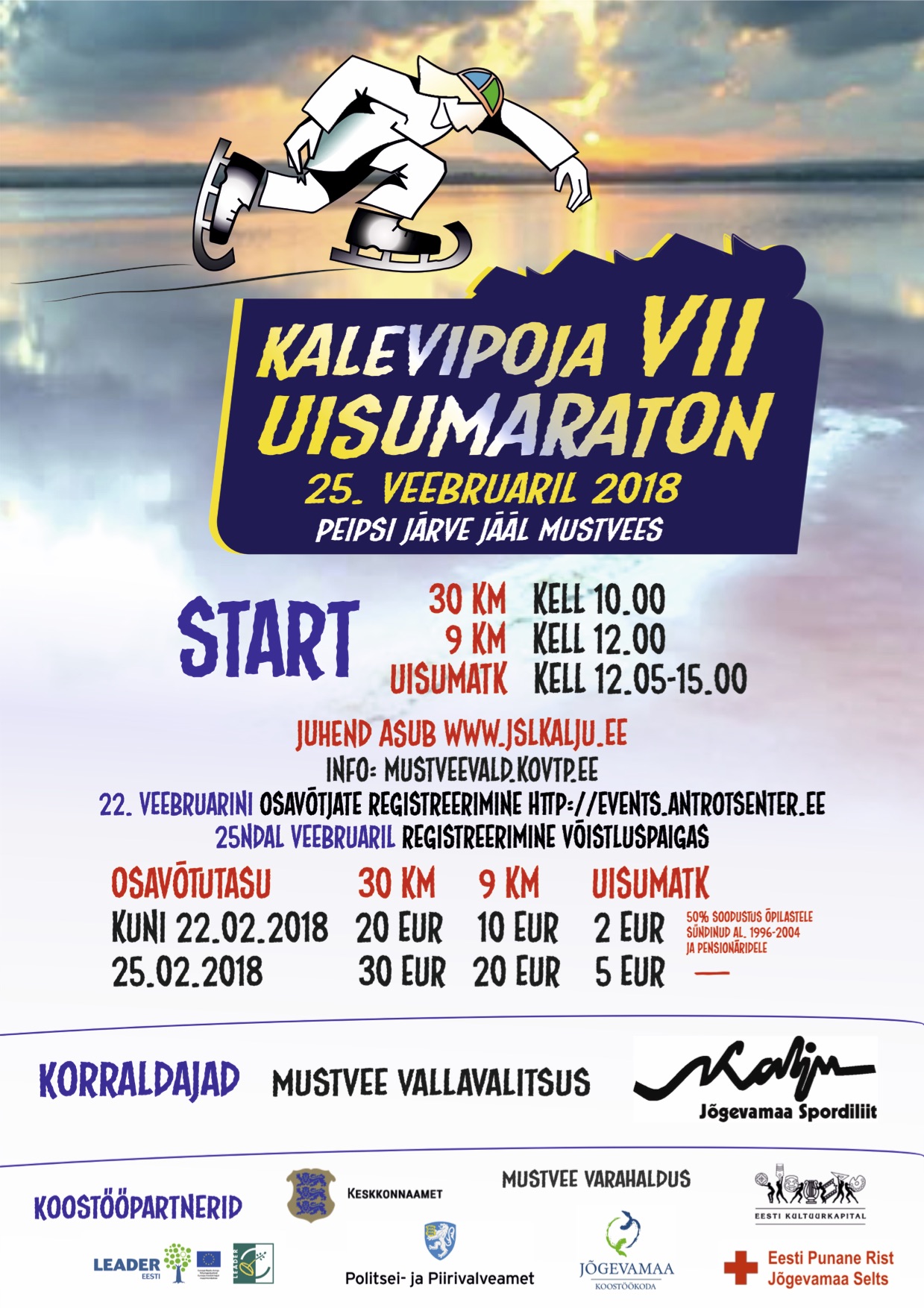 Kalevipoja VII Uisumaraton Kalevipoja VII Uisumaraton toimub 25. veebruaril 2018 kell 10.00 Mustvees. Täpsem info: